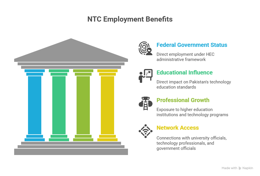 Next to the high emphasis on technology education and digital transformation in Pakistan, NTC workers will develop a key role in the technological future of Pakistan. The prestigious status of the organization in the education sector together with government employment benefits makes this recruitment very appealing to career driven professionals.